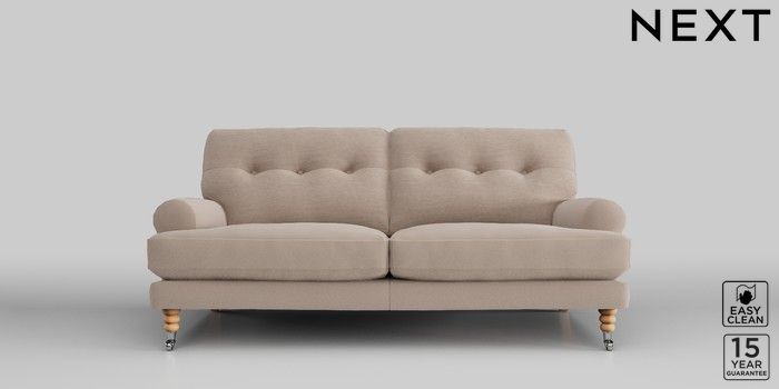 6.11.4 Buy Erin Buttoned Back Deep Sit 3 Seater Small Sofa Fine Chenille Easy Clean Mid Taupe Brown High Classic Turned Chrome Castor - Light from the Next UK online shop Click here to use our accessible website