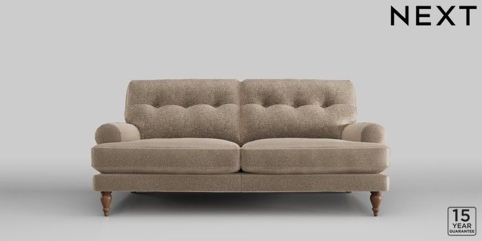 6.11.4 Buy Erin Buttoned Back Deep Sit 3 Seater Small Sofa Plush Chenille Mid Natural High Classic Turned - Mid from the Next UK online shop Click here to use our accessible website