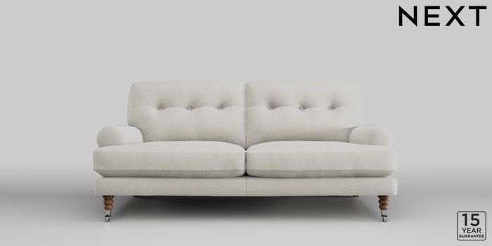 6.11.4 Buy Erin Buttoned Back Deep Sit 3 Seater Small Sofa Plush Chenille Oyster High Classic Turned Chrome Castor - Mid from the Next UK online shop Click here to use our accessible website