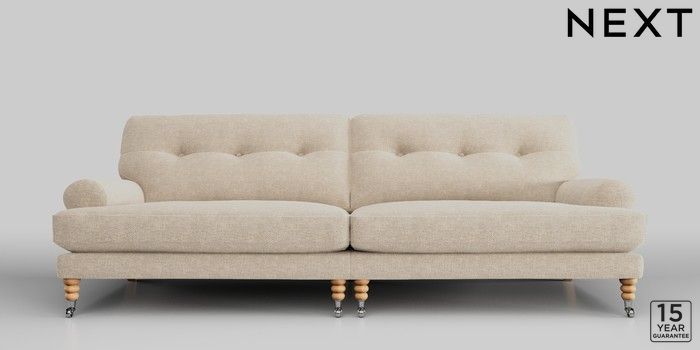 6.11.4 Buy Erin Buttoned Back Deep Sit 4 Seater Large Sofa Chunky Weave Cream High Classic Turned Chrome Castor - Light from the Next UK online shop Click here to use our accessible website
