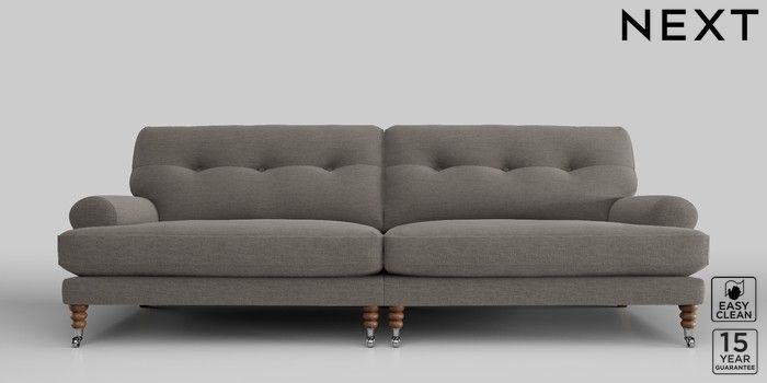 6.11.4 Buy Erin Buttoned Back Deep Sit 4 Seater Large Sofa Fine Chenille Easy Clean Dark Smoke Grey High Classic Turned Chrome Castor - Mid from the Next UK online shop Click here to use our accessible website