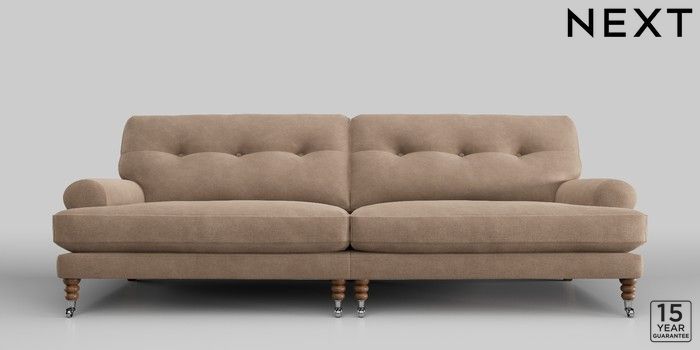 6.11.8 Buy Erin Buttoned Back Deep Sit 4 Seater Large Sofa Luxe Chenille Mid Natural High Classic Turned Chrome Castor - Mid from the Next UK online shop Click here to use our accessible website