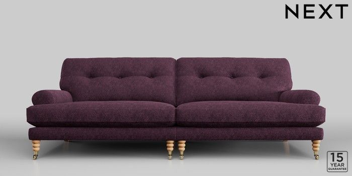 6.11.8 Buy Erin Buttoned Back Deep Sit 4 Seater Large Sofa Plush Chenille Dark Plum Purple High Classic Turned Brass Castor - Light from the Next UK online shop Click here to use our accessible website