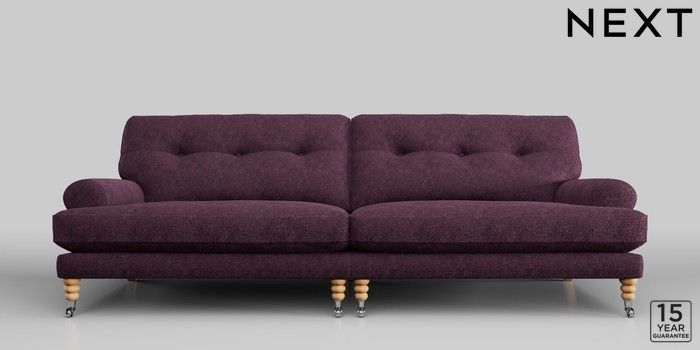 6.11.4 Buy Erin Buttoned Back Deep Sit 4 Seater Large Sofa Plush Chenille Dark Plum Purple High Classic Turned Chrome Castor - Light from the Next UK online shop Click here to use our accessible website