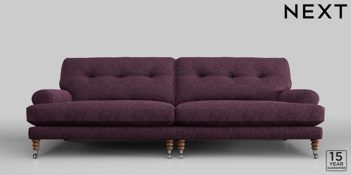 6.11.4 Buy Erin Buttoned Back Deep Sit 4 Seater Large Sofa Plush Chenille Dark Plum Purple High Classic Turned Chrome Castor - Mid from the Next UK online shop Click here to use our accessible website