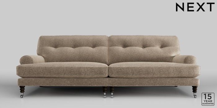 6.11.4 Buy Erin Buttoned Back Deep Sit 4 Seater Large Sofa Plush Chenille Mid Natural High Classic Turned Chrome Castor - Dark from the Next UK online shop Click here to use our accessible website