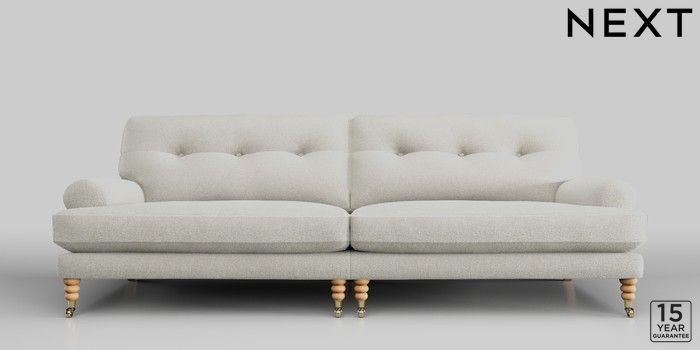 6.11.4 Buy Erin Buttoned Back Deep Sit 4 Seater Large Sofa Plush Chenille Oyster High Classic Turned Brass Castor - Light from the Next UK online shop Click here to use our accessible website