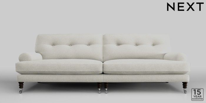 6.11.4 Buy Erin Buttoned Back Deep Sit 4 Seater Large Sofa Plush Chenille Oyster High Classic Turned Chrome Castor - Dark from the Next UK online shop Click here to use our accessible website