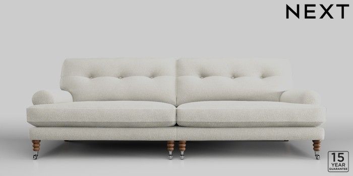 6.11.4 Buy Erin Buttoned Back Deep Sit 4 Seater Large Sofa Plush Chenille Oyster High Classic Turned Chrome Castor - Mid from the Next UK online shop Click here to use our accessible website