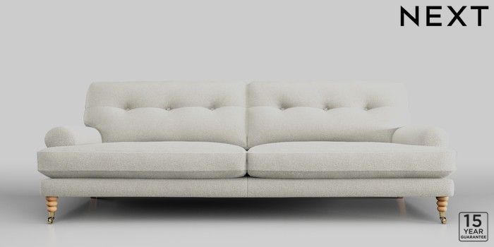 6.11.4 Buy Erin Buttoned Back Deep Sit 4 Seater Large Sofa Plush Chenille Oyster High Classic Turned - Dark from the Next UK online shop Click here to use our accessible website