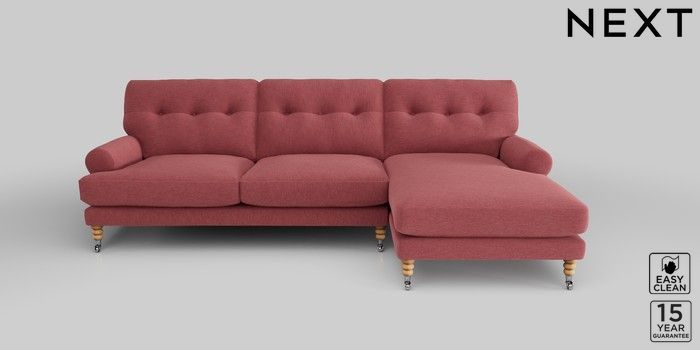 6.11.4 Buy Erin Buttoned Back Deep Sit Medium Sofa Chaise - Right Hand Fine Chenille Easy Clean Mid Pink High Classic Turned Chrome Castor - Light from the Next UK online shop Click here to use our accessible website