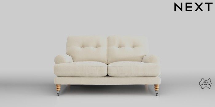 6.11.8 Buy Erin Buttoned Back Leather Deep Sit 2 Seater Small Sofa Turin Leather Cream High Classic Turned Chrome Castor - Light from the Next UK online shop Click here to use our accessible website