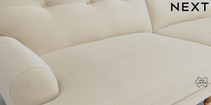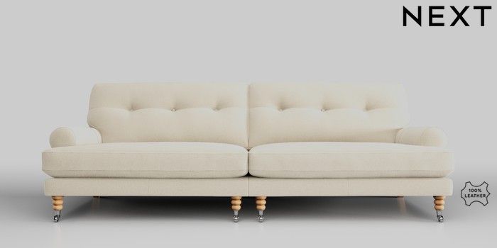 6.11.8 Buy Erin Buttoned Back Leather Deep Sit 4 Seater Large Sofa Turin Leather Cream High Classic Turned Chrome Castor - Light from the Next UK online shop Click here to use our accessible website