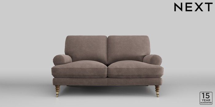 6.12.1 Buy Erin Deep Relaxed Sit 2 Seater Small Sofa Luxe Chenille Mink Brown High Classic Turned Brass Castor - Dark from the Next UK online shop Click here to use our accessible website