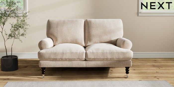 7.2.6 Buy Erin Deep Relaxed Sit 2 Seater Small Sofa Multi Weave Mid Natural High Classic Turned Chrome Castor - Dark from the Next UK online shop Click here to use our accessible website