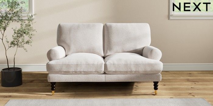 7.2.6 Buy Erin Deep Relaxed Sit 2 Seater Small Sofa Multi Weave Oyster High Classic Turned Brass Castor - Dark from the Next UK online shop Click here to use our accessible website