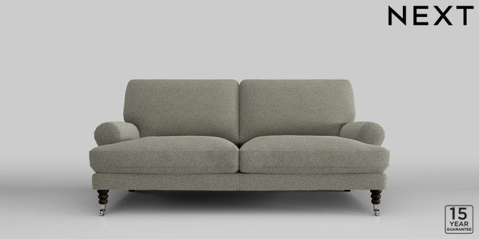 6.12.1 Buy Erin Deep Relaxed Sit 3 Seater Small Sofa Chunky Marl Light Olive Green High Classic Turned Chrome Castor - Dark from the Next UK online shop Click here to use our accessible website