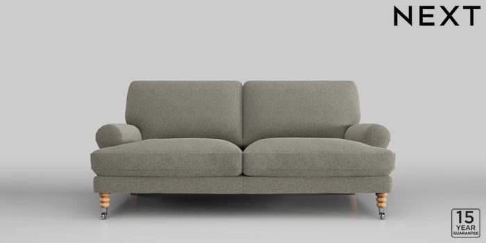 6.12.1 Buy Erin Deep Relaxed Sit 3 Seater Small Sofa Chunky Marl Light Olive Green High Classic Turned Chrome Castor - Light from the Next UK online shop Click here to use our accessible website