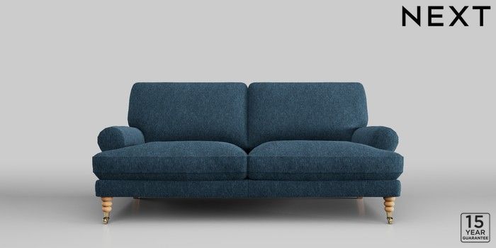 6.12.1 Buy Erin Deep Relaxed Sit 3 Seater Small Sofa Cotswold Chenille Dark Blue High Classic Turned Brass Castor - Light from the Next UK online shop Click here to use our accessible website