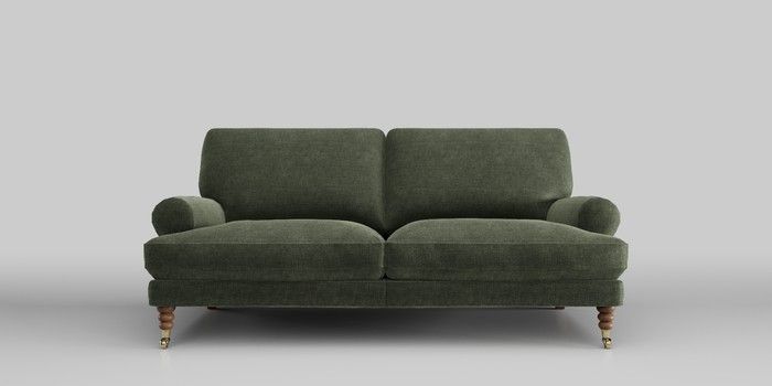 7.0.3 Buy Erin Deep Relaxed Sit 3 Seater Small Sofa Luxe Chenille Mid Green High Classic Turned Brass Castor - Mid from the Next UK online shop Click here to use our accessible website