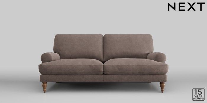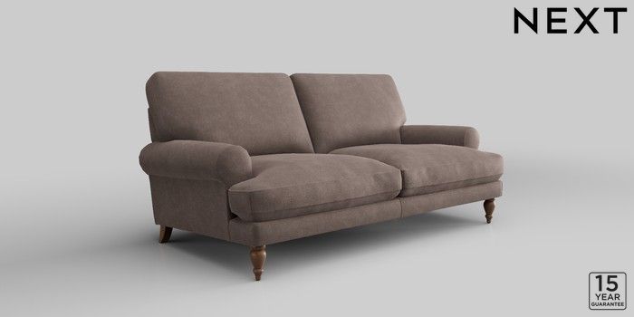 6.12.1 Buy Erin Deep Relaxed Sit 3 Seater Small Sofa Luxe Chenille Mink Brown High Classic Turned - Mid from the Next UK online shop Click here to use our accessible website