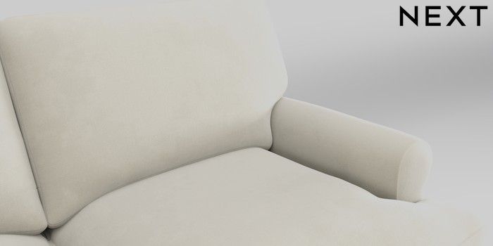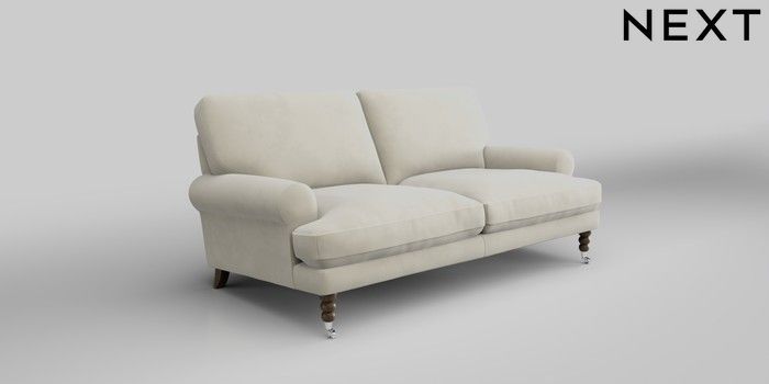7.0.3 Buy Erin Deep Relaxed Sit 3 Seater Small Sofa Luxe Chenille Oyster High Classic Turned Chrome Castor - Mid from the Next UK online shop Click here to use our accessible website