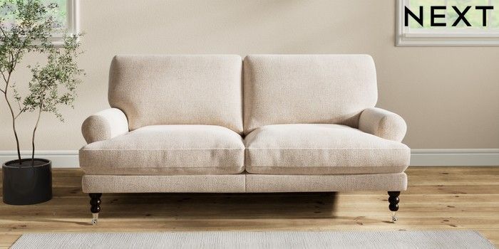 7.2.6 Buy Erin Deep Relaxed Sit 3 Seater Small Sofa Multi Weave Mid Natural High Classic Turned Chrome Castor - Dark from the Next UK online shop Click here to use our accessible website