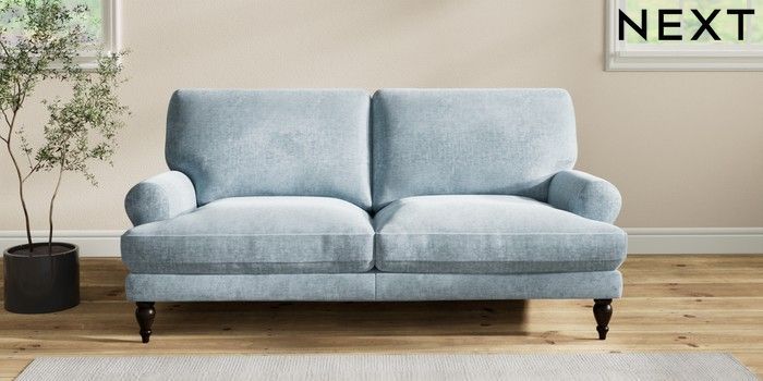 7.2.6 Buy Erin Deep Relaxed Sit 3 Seater Small Sofa Plush Chenille Light Blue High Classic Turned - Dark from the Next UK online shop Click here to use our accessible website