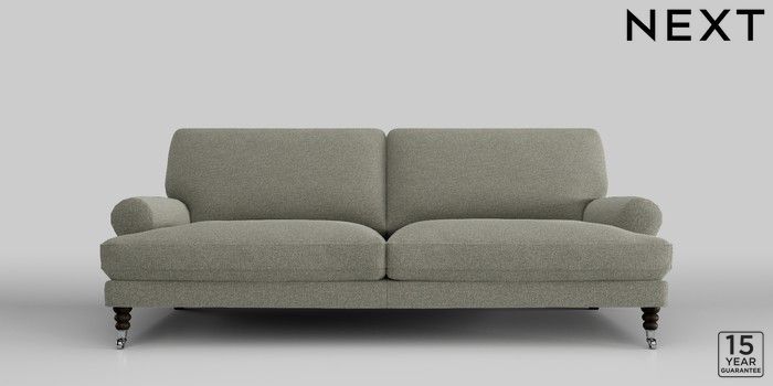 6.12.1 Buy Erin Deep Relaxed Sit 3 Seater Sofa Chunky Marl Light Olive Green High Classic Turned Chrome Castor - Dark from the Next UK online shop Click here to use our accessible website