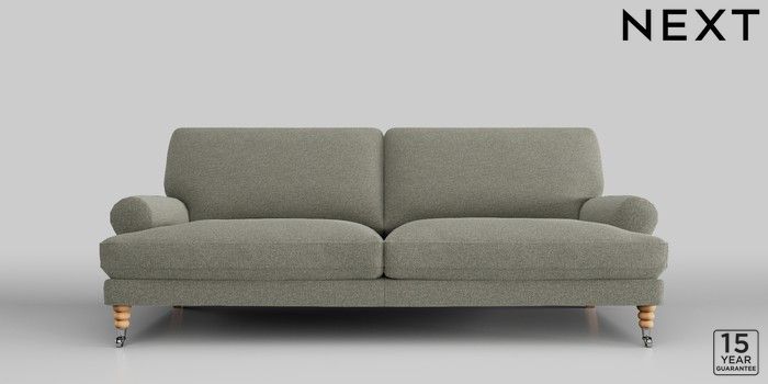 6.12.1 Buy Erin Deep Relaxed Sit 3 Seater Sofa Chunky Marl Light Olive Green High Classic Turned Chrome Castor - Light from the Next UK online shop Click here to use our accessible website