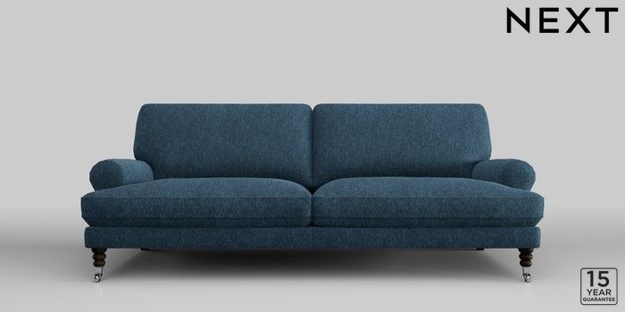 6.12.1 Buy Erin Deep Relaxed Sit 3 Seater Sofa Cotswold Chenille Dark Blue High Classic Turned Chrome Castor - Dark from the Next UK online shop Click here to use our accessible website
