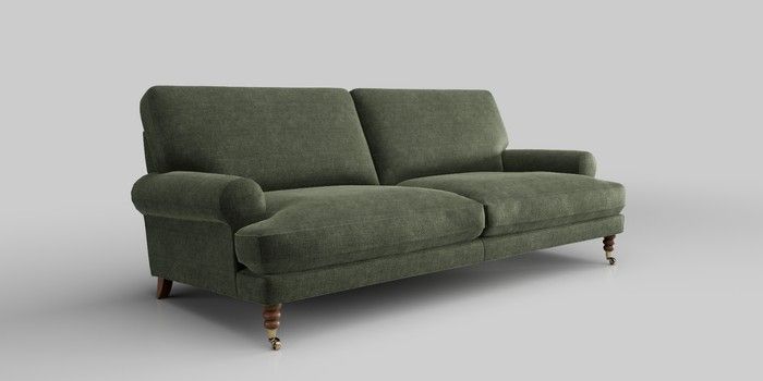 6.12.1 Buy Erin Deep Relaxed Sit 3 Seater Sofa Luxe Chenille Mid Green High Classic Turned Brass Castor - Mid from the Next UK online shop Click here to use our accessible website