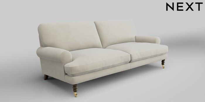 7.0.3 Buy Erin Deep Relaxed Sit 3 Seater Sofa Luxe Chenille Oyster High Classic Turned Brass Castor - Mid from the Next UK online shop Click here to use our accessible website
