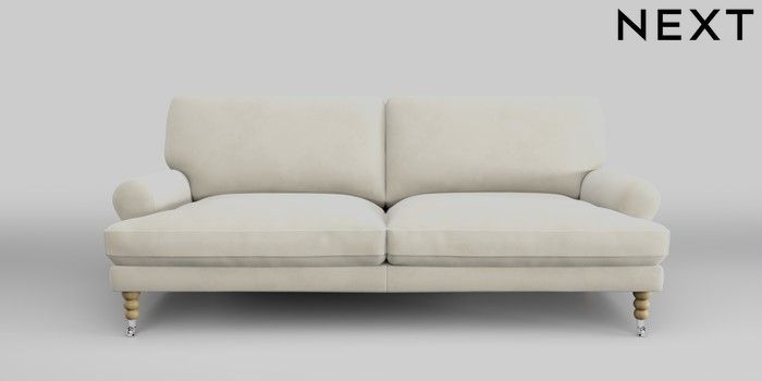 7.0.3 Buy Erin Deep Relaxed Sit 3 Seater Sofa Luxe Chenille Oyster High Classic Turned Chrome Castor - Light from the Next UK online shop Click here to use our accessible website