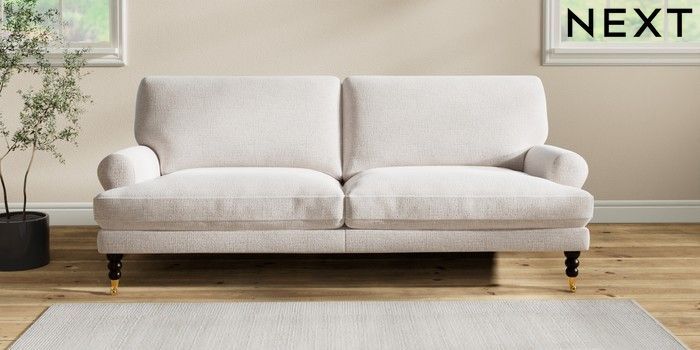 7.2.6 Buy Erin Deep Relaxed Sit 3 Seater Sofa Multi Weave Oyster High Classic Turned Brass Castor - Dark from the Next UK online shop Click here to use our accessible website