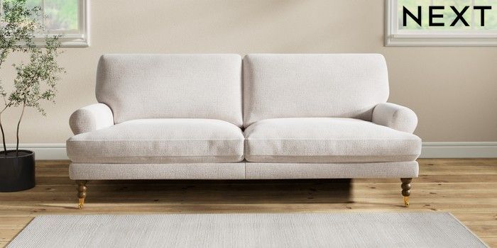 7.2.6 Buy Erin Deep Relaxed Sit 3 Seater Sofa Multi Weave Oyster High Classic Turned Brass Castor - Mid from the Next UK online shop Click here to use our accessible website