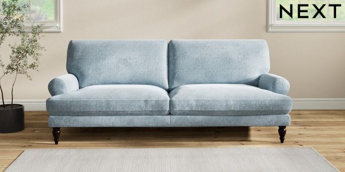 7.2.6 Buy Erin Deep Relaxed Sit 3 Seater Sofa Plush Chenille Light Blue High Classic Turned - Dark from the Next UK online shop Click here to use our accessible website