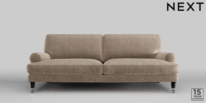 6.11.8 Buy Erin Deep Relaxed Sit 3 Seater Sofa Plush Chenille Mid Natural High Classic Turned Chrome Castor - Dark from the Next UK online shop Click here to use our accessible website