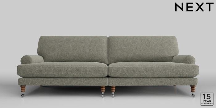6.12.1 Buy Erin Deep Relaxed Sit 4 Seater Large Sofa Chunky Marl Light Olive Green High Classic Turned Chrome Castor - Mid from the Next UK online shop Click here to use our accessible website