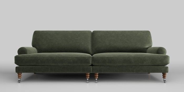 7.0.3 Buy Erin Deep Relaxed Sit 4 Seater Large Sofa Luxe Chenille Mid Green High Classic Turned Chrome Castor - Mid from the Next UK online shop Click here to use our accessible website