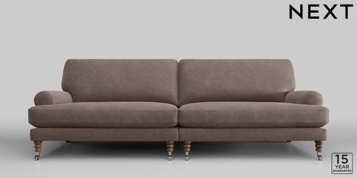 6.12.1 Buy Erin Deep Relaxed Sit 4 Seater Large Sofa Luxe Chenille Mink Brown High Classic Turned Chrome Castor - Mid from the Next UK online shop Click here to use our accessible website