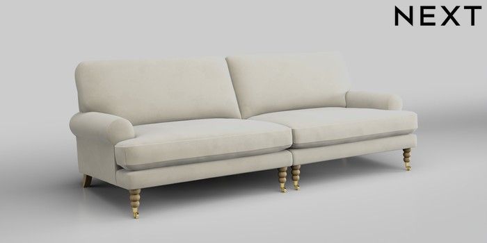 7.0.3 Buy Erin Deep Relaxed Sit 4 Seater Large Sofa Luxe Chenille Oyster High Classic Turned Brass Castor - Light from the Next UK online shop Click here to use our accessible website