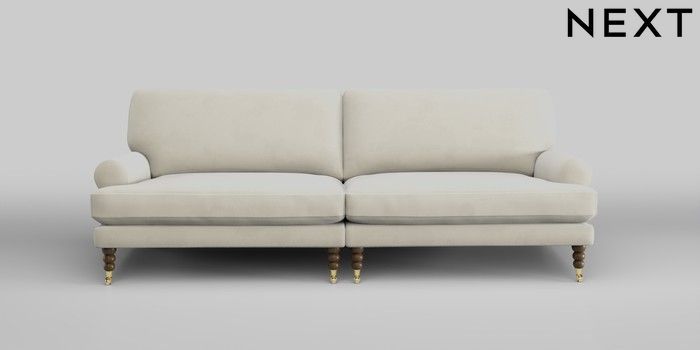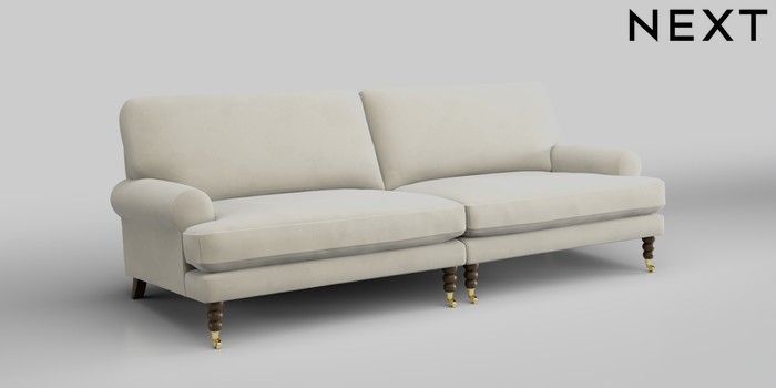 7.0.3 Buy Erin Deep Relaxed Sit 4 Seater Large Sofa Luxe Chenille Oyster High Classic Turned Brass Castor - Mid from the Next UK online shop Click here to use our accessible website