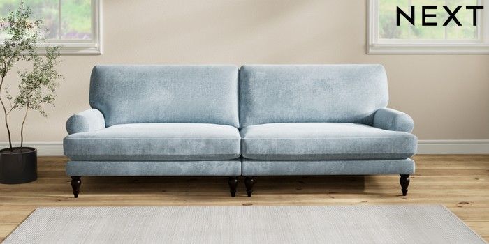 7.2.6 Buy Erin Deep Relaxed Sit 4 Seater Large Sofa Plush Chenille Light Blue High Classic Turned - Dark from the Next UK online shop Click here to use our accessible website