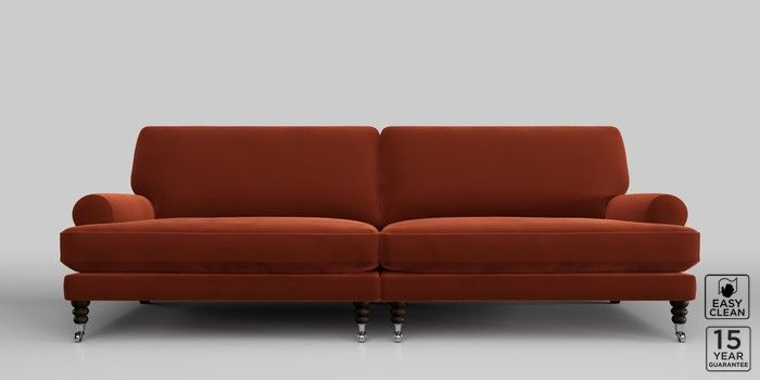 6.11.8 Buy Erin Deep Relaxed Sit 4 Seater Large Sofa Plush Velvet Easy Clean Ginger Orange High Classic Turned Chrome Castor - Dark from the Next UK online shop Click here to use our accessible website