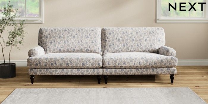 7.3.1 Buy Erin Deep Relaxed Sit 4 Seater Large Sofa Relaxed Linen Look Print Woodblock Floral Blue High Classic Turned - Dark from the Next UK online shop Click here to use our accessible website