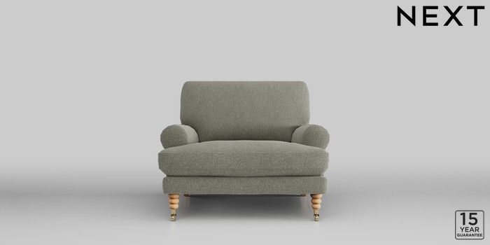 6.12.13 Buy Erin Deep Relaxed Sit Armchair Chunky Marl Light Olive Green High Classic Turned Brass Castor - Light from the Next UK online shop Click here to use our accessible website