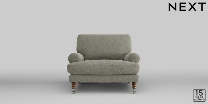 6.12.1 Buy Erin Deep Relaxed Sit Armchair Chunky Marl Light Olive Green High Classic Turned Chrome Castor - Mid from the Next UK online shop Click here to use our accessible website