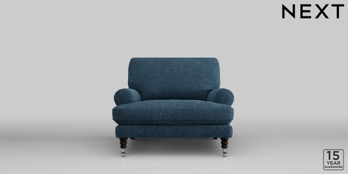 6.12.13 Buy Erin Deep Relaxed Sit Armchair Cotswold Chenille Dark Blue High Classic Turned Chrome Castor - Dark from the Next UK online shop Click here to use our accessible website