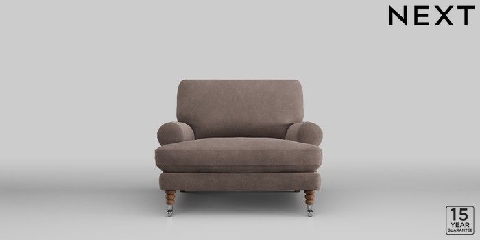 6.12.1 Buy Erin Deep Relaxed Sit Armchair Luxe Chenille Mink Brown High Classic Turned Chrome Castor - Mid from the Next UK online shop Click here to use our accessible website